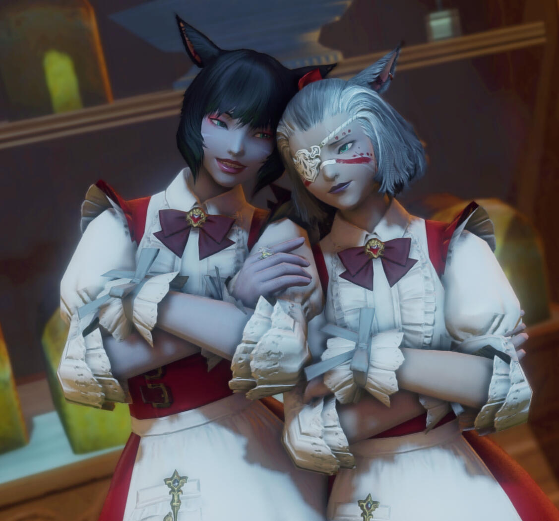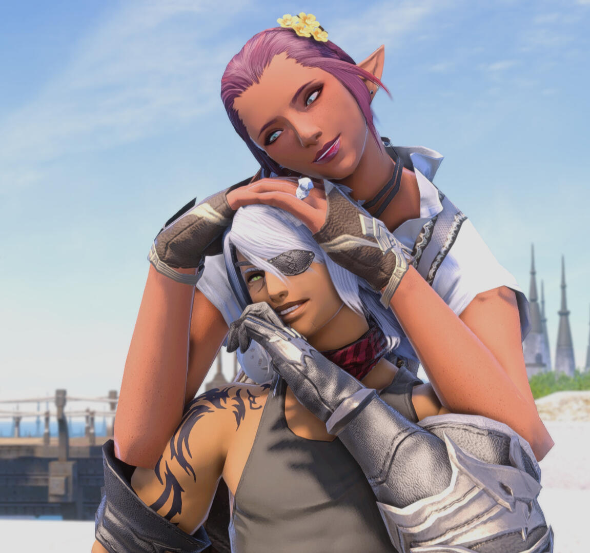 Though technically her cousin via her dad's side, these two act more like annoying siblings than anything. He's the family S'oun never got to grow up with, and the biggest reason she keeps the S' in her name.He also has a gorgeous elezen wife!